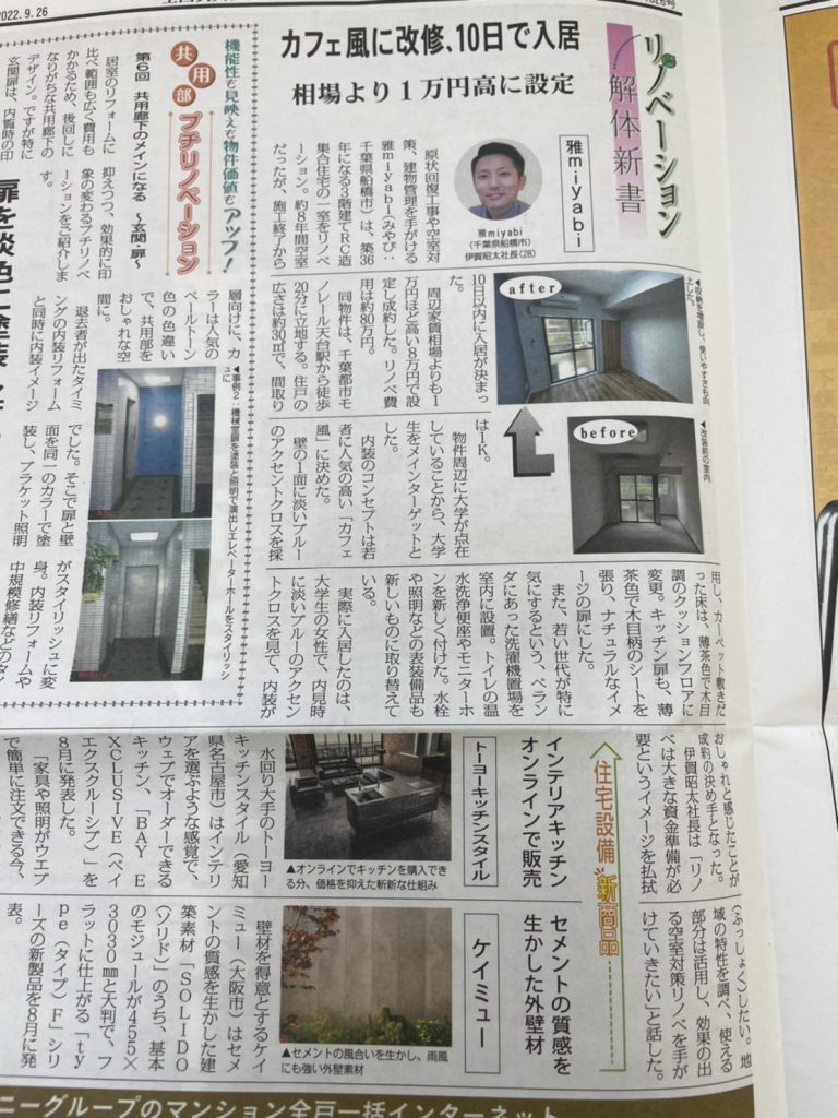 9月26日の全国賃貸住宅新聞にて弊社をご紹介いただきました!