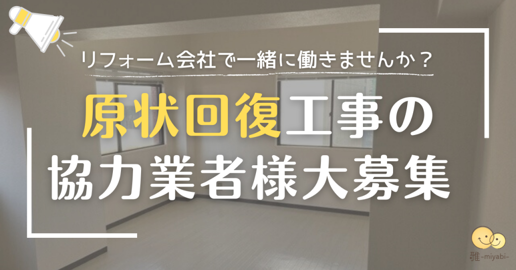 原状回復工事の協力業者様大募集|リフォーム会社で一緒に働きませんか?
