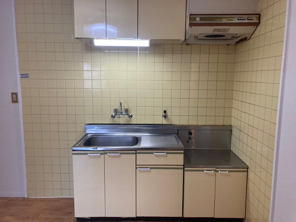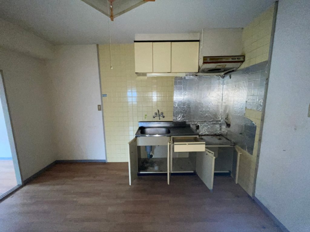 キッチンの壁はそのまま残し、汚れ防止シートを撤去しました。
