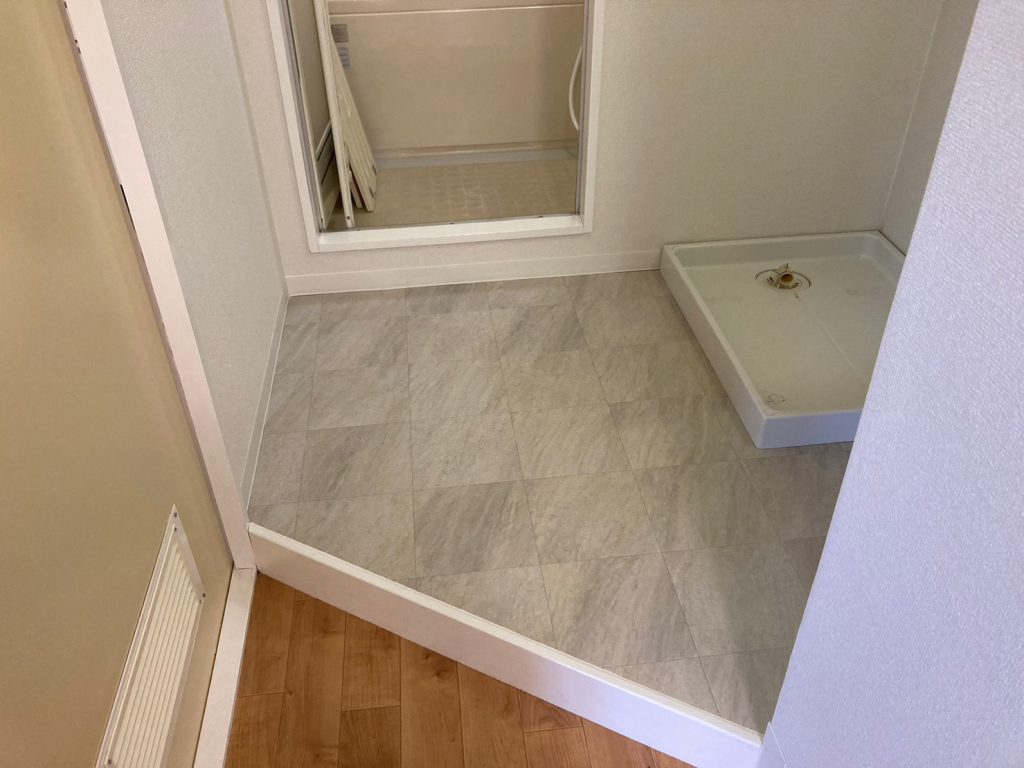 洗濯機置き場兼脱衣所の床材を変えて段差をつけることで、部屋にメリハリが出てワンランクアップしたお部屋になりました。