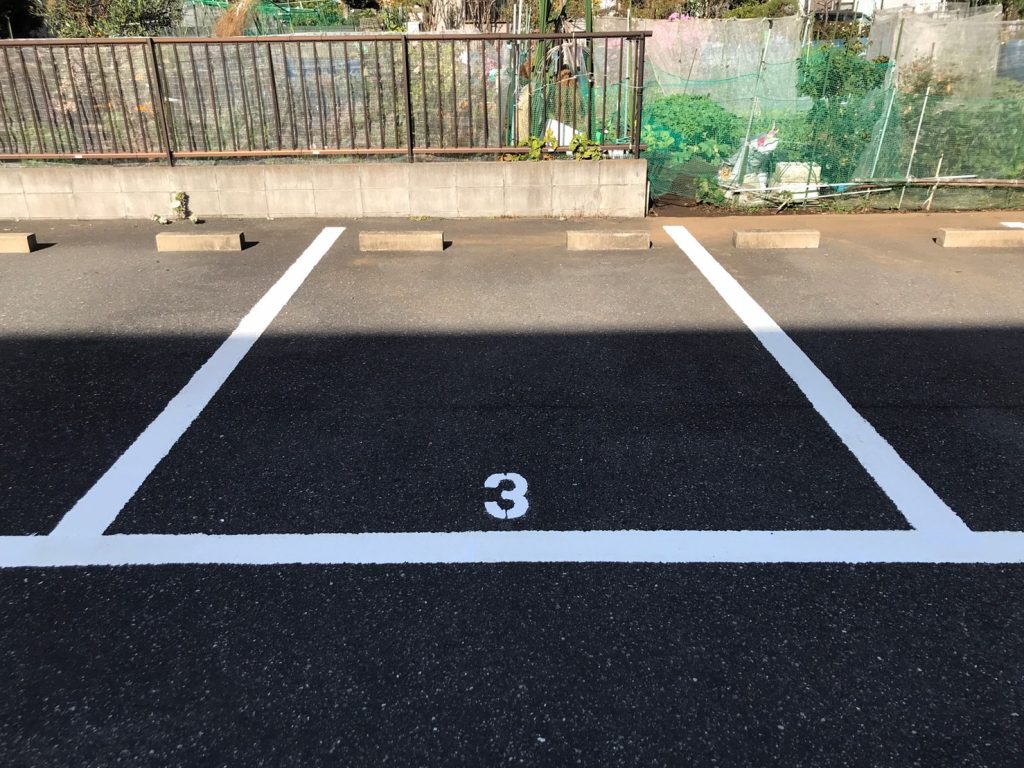 【駐車場工事】駐車場の白線引き工事を行いました